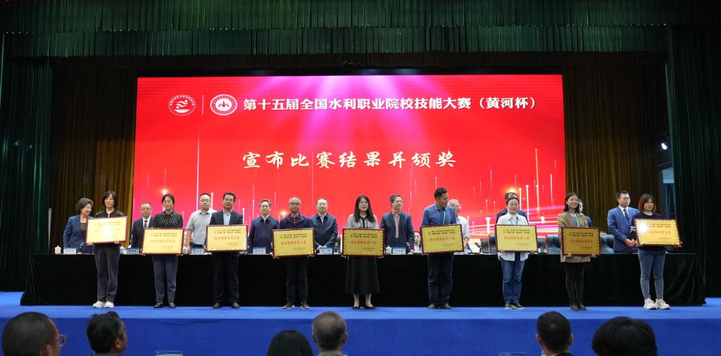 本届大赛有来自全国38所职业院校447名选手分别参加了高职组节水技术、水利工程成图技术、河道修防技术、水利工程造价、工程测量和中职组工程识图、工程测量七个赛项的比赛。经过紧张激烈的角逐,共决出一等奖45名;二等奖90名;三等奖134名;单项团体奖21个;综合团体奖9个。大会为获奖选手代表和团体奖获奖单位颁发了荣誉证书和奖牌。
