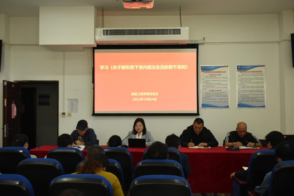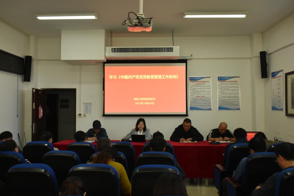10月24日,测绘工程学院党总支在SY5434会议室召开专题理论学习会议,组织全院教师认真学习《中国共产党党员教育管理工作条例》和《关于新形势下党内政治生活的若干准则》。会议由党总支书记高琼主持。