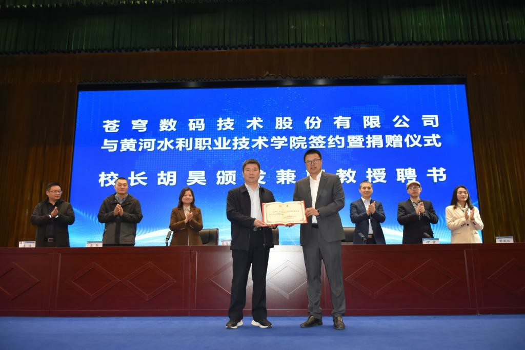 刘旭代表公司向永利官网捐赠了平台,胡昊为刘旭颁发了兼职教授聘任证书。