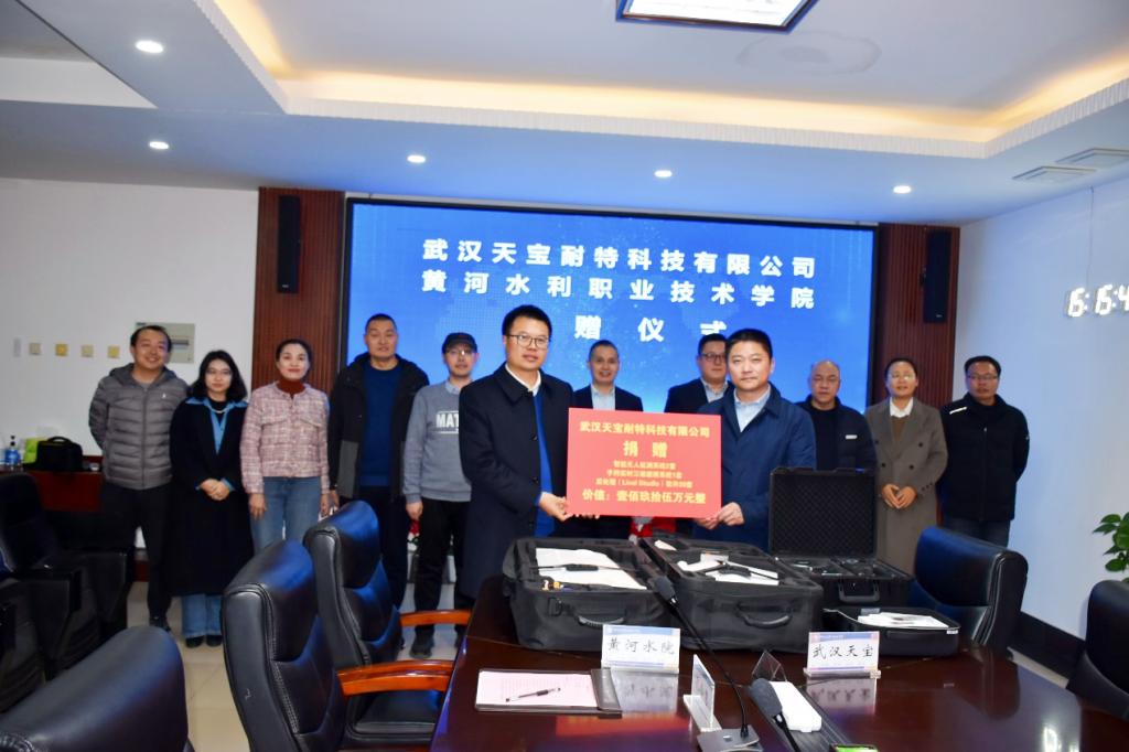 2023年11月20日下午,武汉天宝耐特科技有限公司(以下简称“武汉天宝耐特”)向永利官网捐赠无人机、扫描仪及专业软件,捐赠仪式在行政楼第一会议室隆重举行。武汉天宝耐特总经理叶飞、副总经理唐甜、市场部经理潘明,永利官网党委副书记、校长胡昊及副校长朱焕立出席捐赠仪式。测绘工程学院党总支副书记彭战松、副院长(主持工作)何宽、副院长张丹、教研室主任孔令惠以及骨干教师代表等参加仪式。仪式由何宽主持。