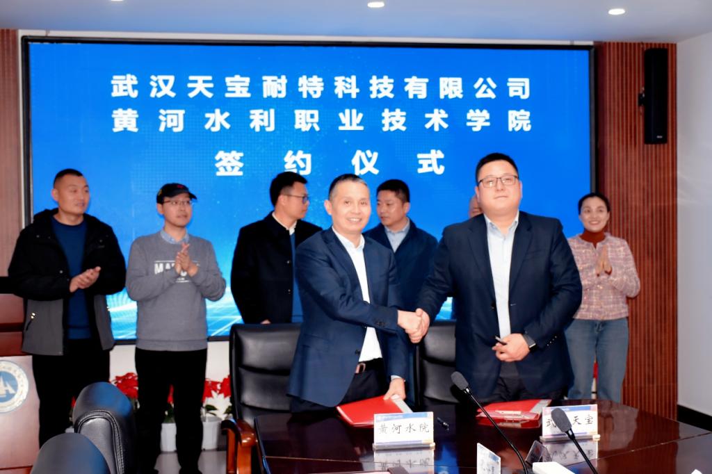 校党委副书记、校长胡昊代表学校接受了企业捐赠,并与武汉天宝耐特总经理叶飞达成共识,双方将积极推进人才培养、产教融合项目开发、科研与技术服务等深度合作,逐步将产教融合落实到数字孪生水利和坝道工程医院智能监测等科研前沿应用上。最后,胡校长为叶飞总经理颁发兼职教授聘书。