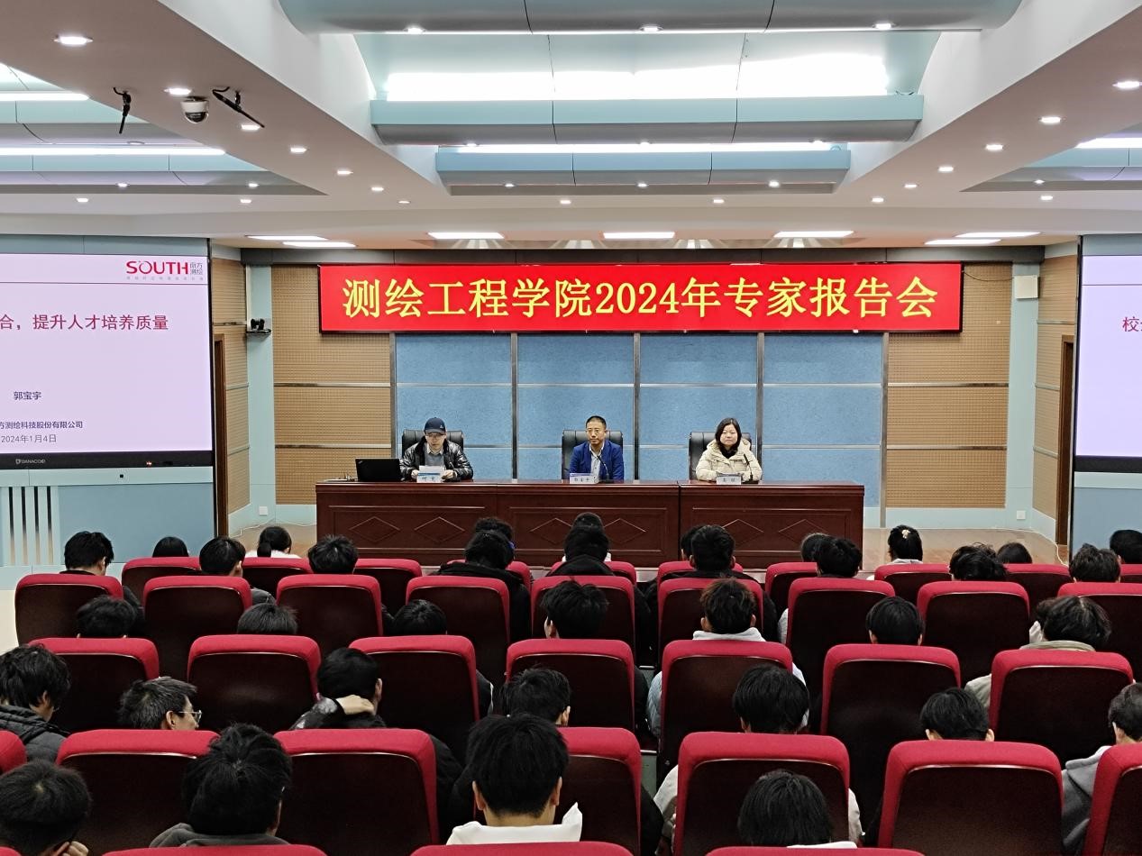 2024年1月4日下午,测绘工程学院特邀广州南方测绘科技股份有限公司副总裁郭宝宇在永利官网3号实训楼学术报告厅举办校企协同产教融合专题报告会。测绘工程学院党总支书记高琼、院长何宽、测绘地理信息技术专业群带头人陈琳,及我院部分教师和学生共150余人参加报告会。报告会由何宽教授主持。