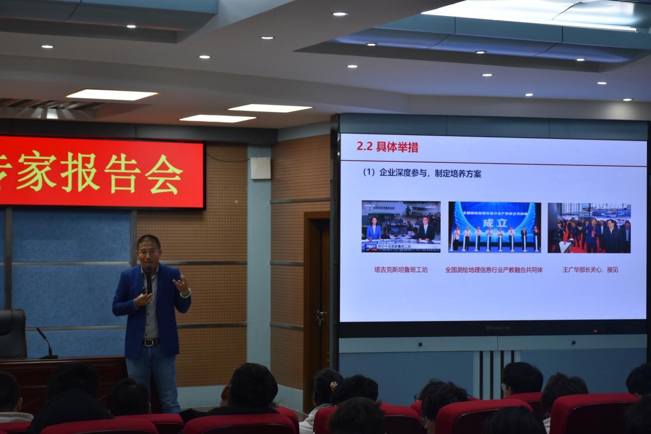 郭宝宇以《校企协同产教融合,提升人才培养质量》为题,从基本情况、主要举措、建设成效和未来设想四个方面进行了深入阐释,介绍了与永利官网合作开展的《地理信息系统应用》课程资源建设情况,并结合自己从学生时代到工作多年来的体验,表达了自己对测绘行业的情怀以及对产教融合和多行业应用的设想。报告立足实际、见解独到、深入浅出、具有很强的指导性和感染力。