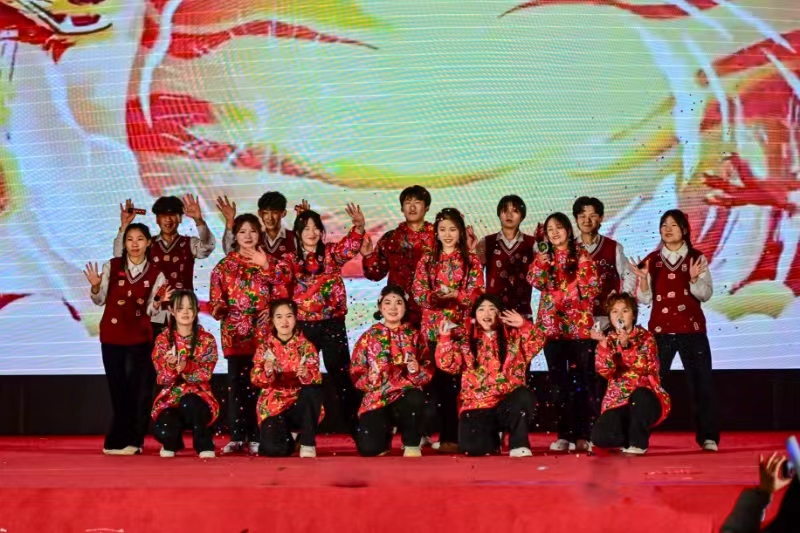 晚会在欢快的开场舞中拉开帷幕,同学们的热情瞬间点燃了整个场地。随后,师生们纷纷登台献艺,用歌声、舞蹈、小品等形式展示才华,引得台下掌声阵阵。教师代表参与其中,共同为大家带来精彩的节目表演。此外,联欢会上还穿插了趣味游戏和互动环节,现场气氛热烈,欢声笑语不断。同学们在轻松愉快的氛围中度过了一个难忘的夜晚。