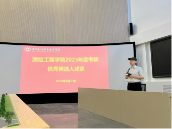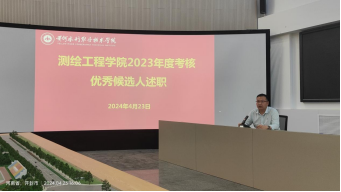 2024年4月23日下午,测绘工程学院召开全体教职工大会,12位年度考核优秀候选人逐一进行2023年度工作述职,全院教职工对入围考核优秀候选人进行投票,由考核领导小组成员汇总投票并统计投票结果。
