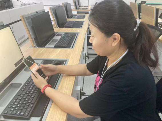 图1 郭玉珍老师观看“我们这片土地”主题思政课