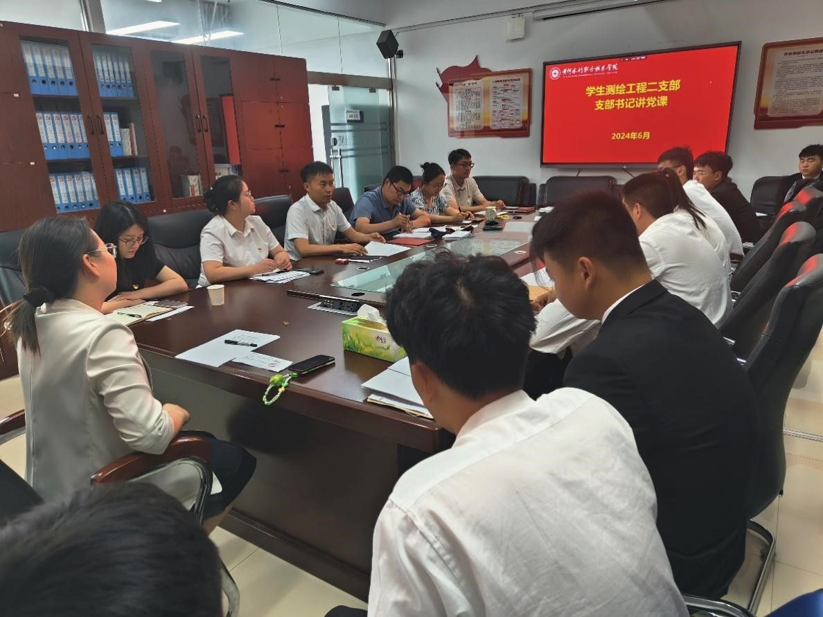 为深入学习贯彻习近平新时代中国特色社会主义思想,引导党员同志增强政治觉悟和党性修养,进一步发挥党员的先锋模范作用,6月19日,测绘工程学院学生测绘工程二支部书记陈普智在党员活动室为支部全体成员讲党课。