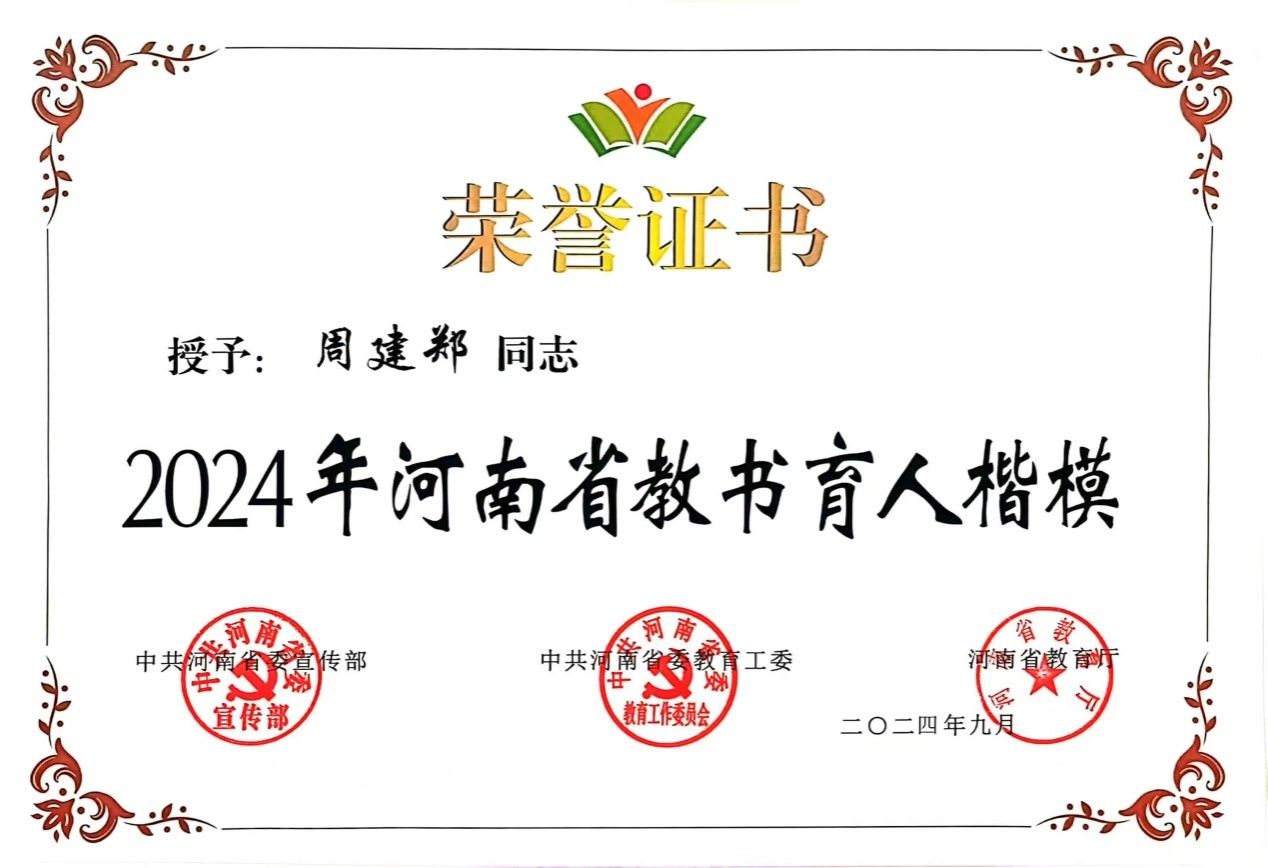 图2 周建郑老师获2024年河南省教书育人楷模