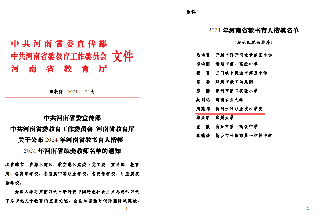 9月10日晚,我省庆祝第40个教师节暨2024年河南省教书育人楷模、河南省最美教师发布仪式在河南广播电视台隆重举行。中共河南省委宣传部、中共河南省委教育工作委员会、河南省教育厅下发《关于公布2024年河南省教书育人楷模、2024年河南省最美教师名单的通知》。经全省各地各校遴选推荐、资格审查、预选评审、专家终评等环节,共评出10位2024年河南省教书育人楷模、10位2024年河南省最美教师。永利官网教师周建郑当选为2024年河南省教书育人楷模。