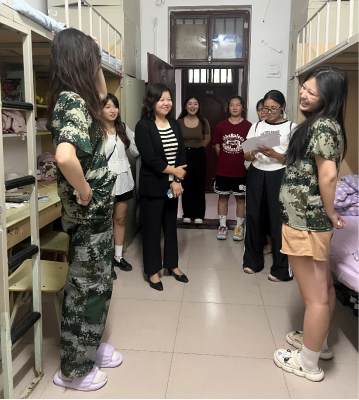 ——开展走访慰问新生宿舍活动。9月8日晚,全院科级以上干部、专业教研室主任、专业教师深入新生宿舍,与新生亲切交谈,了解新生思想动态,引导新生尽快适应大学生活,对他们未来成长寄予殷切期望。同时,教育学生增强防诈防骗意识,严格遵守校园管理规定,为共筑和谐平安校园贡献出自己的一份力量。