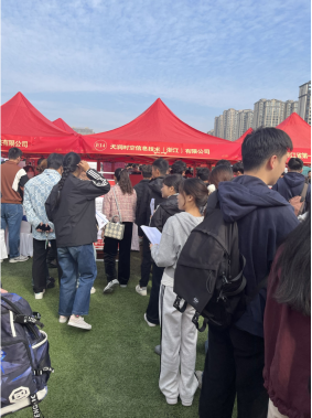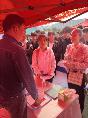 双选会现场人头攒动,气氛热烈。各用人单位纷纷亮出自己的优势,吸引毕业生投递简历。同学们手拿简历,积极向自己心仪的企业应聘,招聘负责人也耐心认真地向同学们答疑解惑,针对岗位职责、发展潜力、薪酬福利等方面与同学们深入交流。