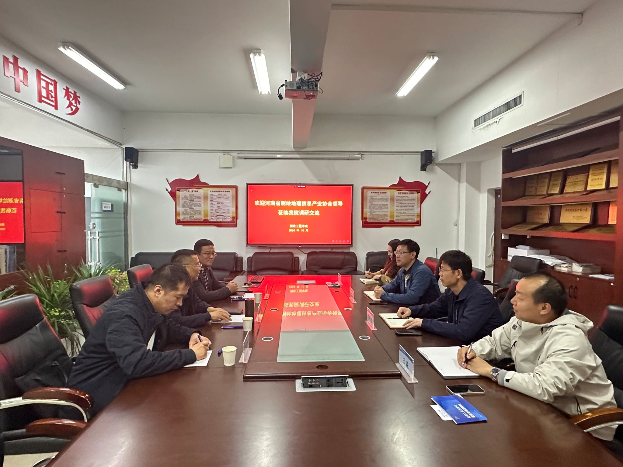 11月1日,河南省地理信息产业协会副会长兼秘书长曹源一行来到我院调研,并在测绘工程学院党员活动中心进行了深入座谈交流,测绘工程学院院长何宽、副院长朱曙光、副院长孔令惠、校企办负责人王淼参加了座谈会。