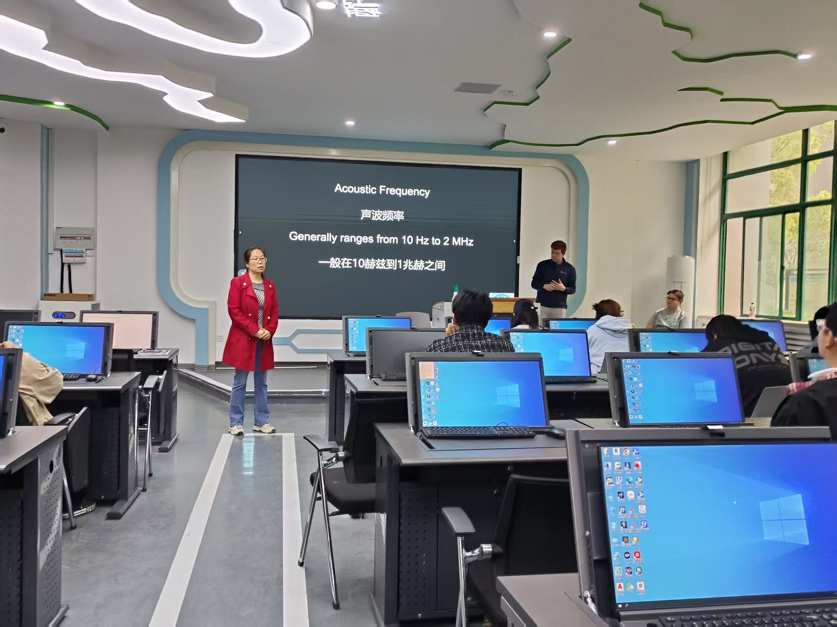 外籍教师John和测绘工程学院陈慧共同进行多媒体教学