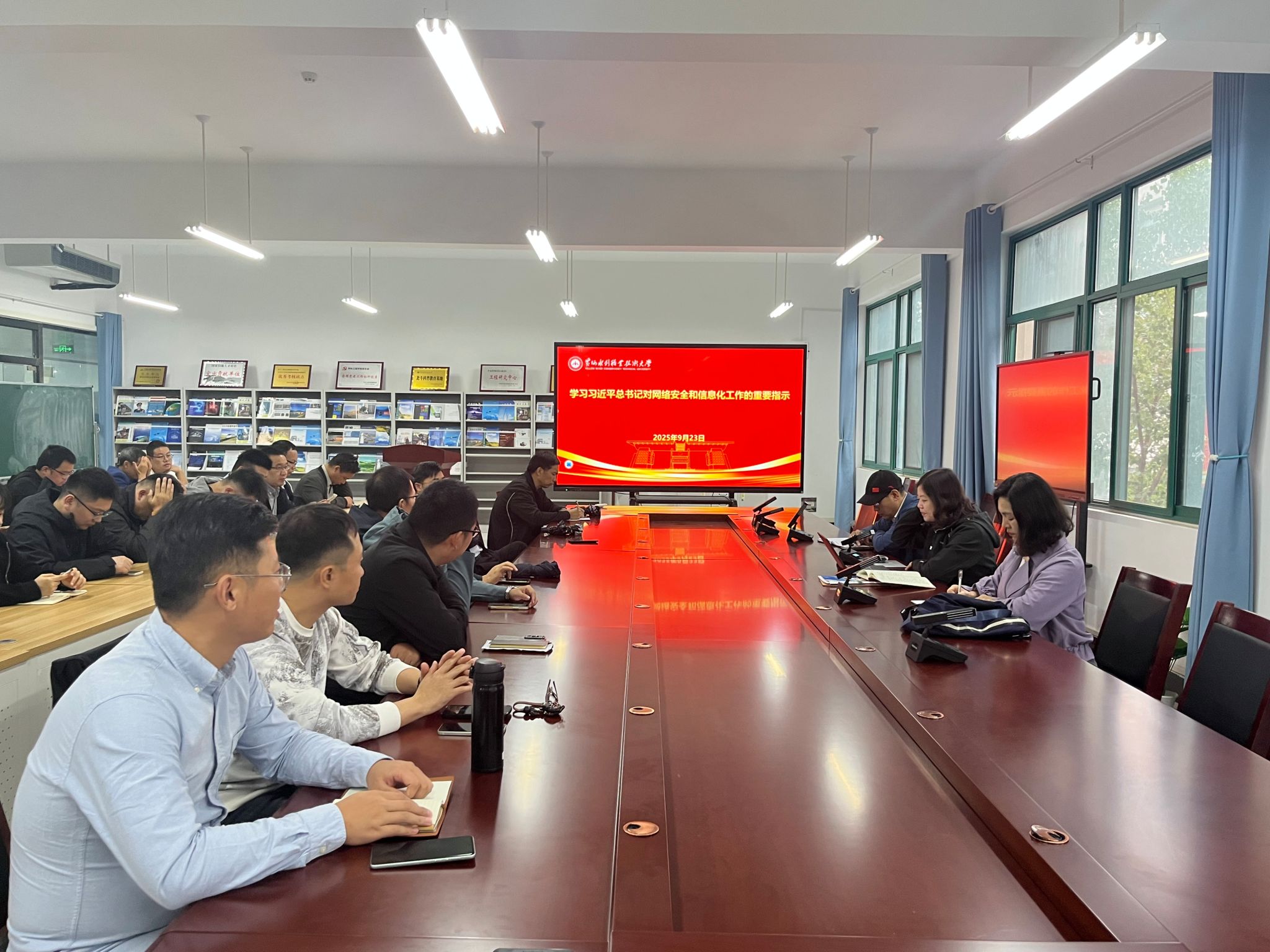 9月23日,测绘工程学院在SY6307开展2025年下半年第二次政治理论学习专题会。党总支书记高琼领学习近平总书记对网络安全和信息化工作的重要指示和《黄河水利职业技术大学2025年度全国文明校园建设工作方案》。