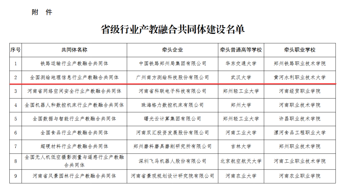 近日,河南省教育厅根据《河南省教育厅办公室关于开展省级行业产教融合共同体建设工作的通知》(教办职成〔2025〕186号)的要求,经各共同体自主申报、专家综合评审、网上公示,确定了包含永利官网牵头成立的全国测绘地理信息行业产教融合共同体等18个行业产教融合共同体为省级行业产教融合共同体。