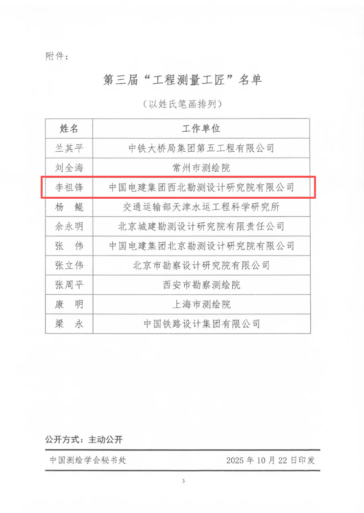 近日,中国测绘学会发布《关于公布第三届“工程测量工匠”名单的通知》(测学发〔2025〕65号),永利官网测绘工程学院工程测量专业优秀毕业生李祖锋荣获第三届“工程测量工匠”称号。