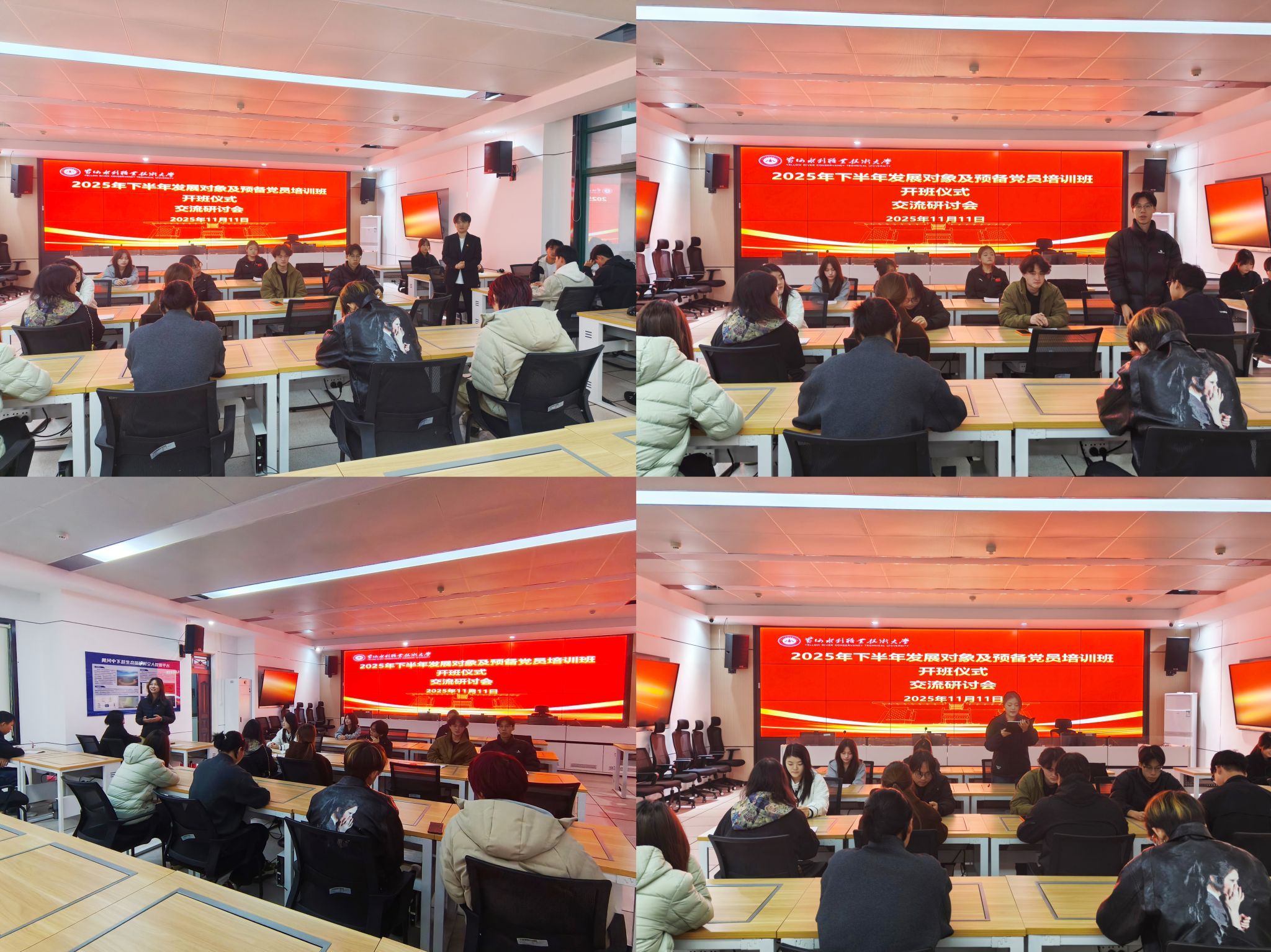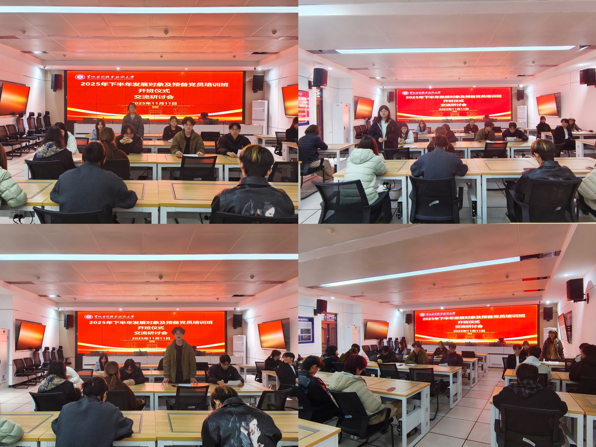 近日,测绘工程学院在SY8118举行2025年下半年发展对象及预备党员培训班开班仪式,学院党总支书记高琼、学生测绘工程一支部书记李忠旺、学生测绘工程二支部书记杜文志、全体辅导员老师参会。会议由党总支办公室主任赵欣主持。