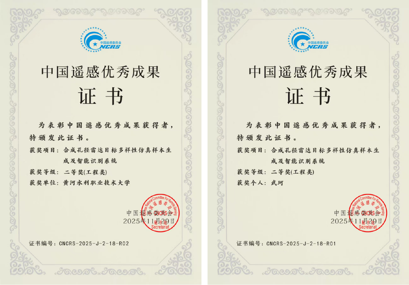 2025年11月,第二十三届中国遥感大会在广州举行,大会表彰了年度中国遥感优秀成果。其中永利官网测绘工程学院武珂博士团队,在学校科研体系的有力支撑下,成功研制的“合成孔径雷达目标多样性仿真样本生成及智能识别系统”,荣获2025年度中国遥感委员会优秀成果二等奖。这一荣誉不仅彰显了该校在尖端测绘技术领域的创新实力,更标志着其校级雷达仿真实验室建设取得突破性进展,为服务国家重大战略需求提供了坚实支撑。