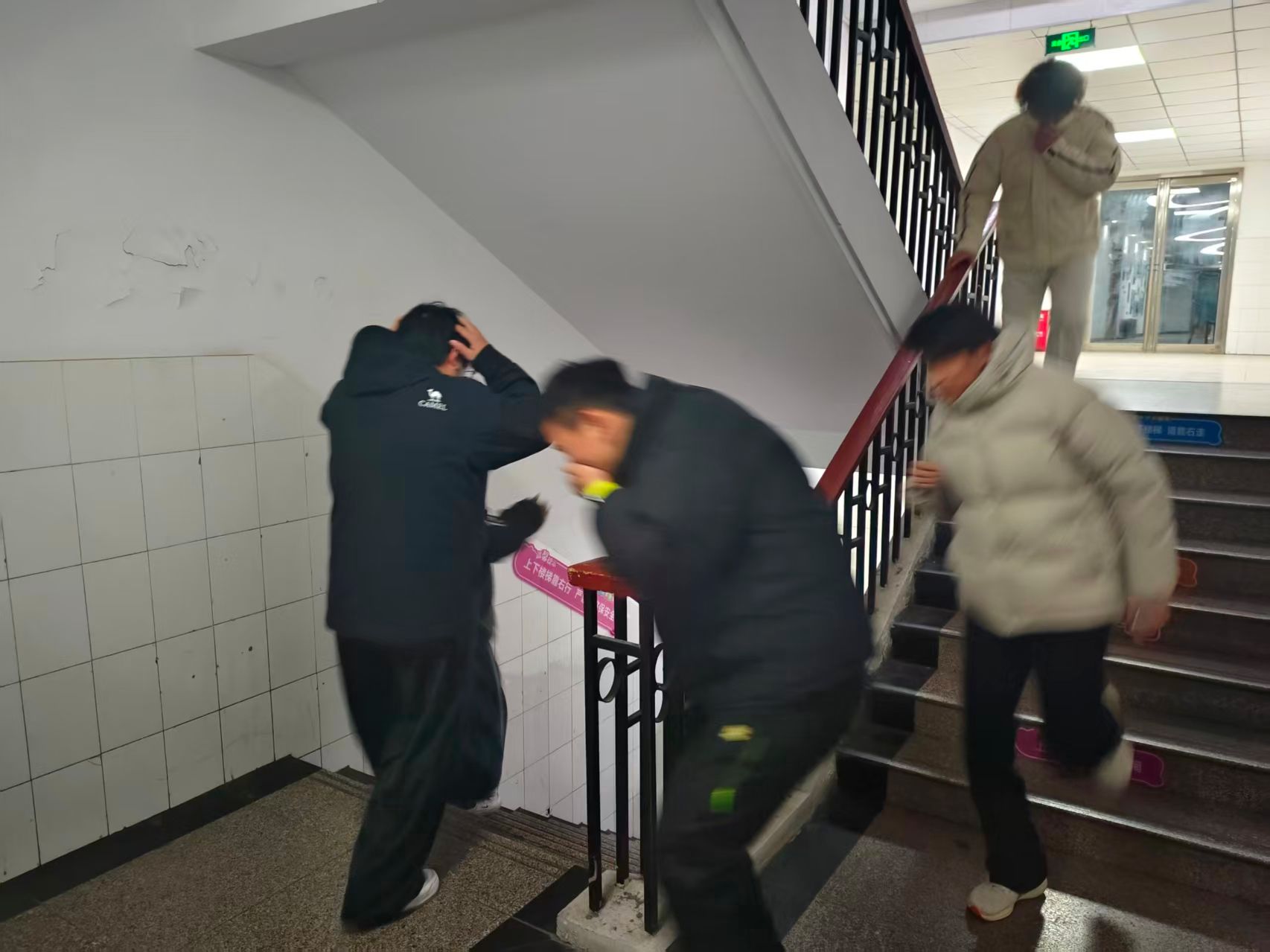 晚7点,随着宿舍警报响起,同学们在各楼层辅导员老师的引导指挥下,按照规定的逃生路线,有序地疏散到指定安全区域。最后以班级为单位清点、核对人数,并向现场总指挥汇报,确保全院疏散到位。整个演练过程安全、迅速、有序。