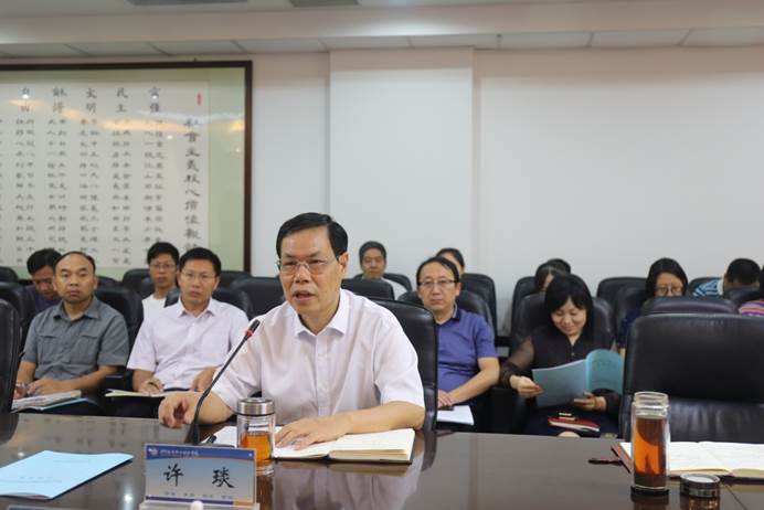 2018年8月30日上午,在行政楼第二会议室召开省属高校财务专项治理和审计整改工作汇报会。会议由党委副书记、工会主席王卫东主持,党委书记许琰出席会议并讲话。副校长杨士恒、党委副书记刘卫锋、副校长菅浩然及党政办公室、组织部、监察处、教师工作部、国有资产管理处、审计处、计划财务处等部门主要负责人参加了会议。