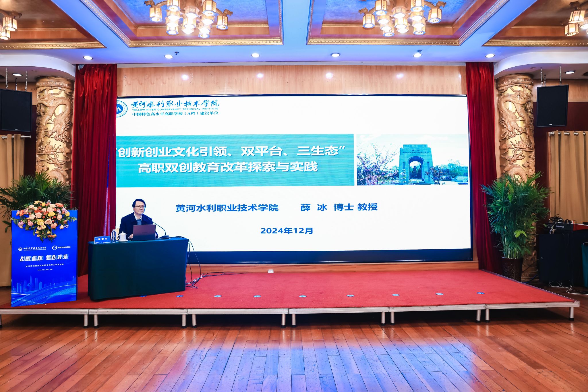 由全国数智双创行业产教融合共同体主办、山东商业职业技术学院承办的黄河流域创新创业职业教育工作推进会于12月13日至14日在济南召开,永利官网创新创业学院院长薛冰受邀参加会议并做主题发言。