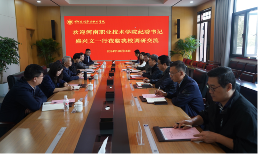 10月16日上午,河南职业技术学院纪委书记盛兴文一行6人永利官网调研交流。永利官网纪委书记刘许亮出席调研交流活动,党政办公室、党委组织部、纪委、党委巡察工作办公室、商务与管理学院等部门负责人参加交流。