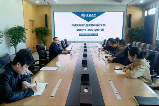 河南大学党委巡察工作办公室副处级巡察专员唐胜以《高校内部巡察实务浅析,如何快速发现问题》为题,结合巡察工作实例,对巡察工作中需要注意的重点环节和内容进行了系统讲解,突出基本理论和业务知识相结合,精准把握政治巡察内涵要求,帮助巡察组成员理清工作思路,明确工作方法,提升实战本领。