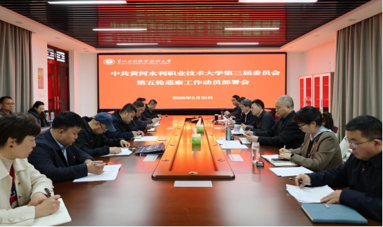 3月30日下午,中共黄河水利职业技术大学第三届委员会第五轮巡察工作动员部署会在3号实训馆3319会议室召开。校党委副书记、校长胡昊,校党委副书记、工会主席、巡察工作领导小组副组长杨士恒,校纪委书记、巡察工作领导小组副组长刘许亮出席会议,党委巡察工作领导小组成员,第五轮巡察组成员,被巡察党组织领导班子成员参加会议。会议由刘许亮主持。