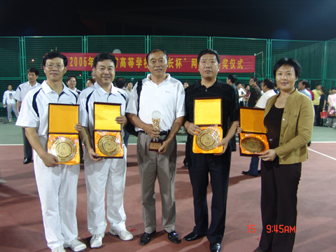 本次比赛共有25所高校、80多名高校领导参加。我院代表队由院长刘宪亮、党委副书记张惠贞、副院长孙五继、副院长茹正波、纪委书记王卫东组成。经过两天的激烈角逐,孙五继和王卫东获得男子乙组(50岁以下)双打亚军,张惠贞和茹正波获得混合双打第四名。