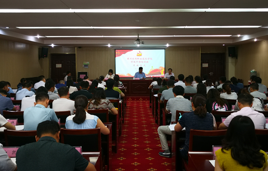 许琰还与大家分享了“八度”人生感悟。即:胸怀要大度,容天下难容之事;说话要适度,内心敞亮,坦坦荡荡;读书有厚度,读好政治理论书、专业技能书、人生修养书;视野有宽度,学会看远、看淡、看透;理论有深度,用马克思主义的理论观点方法指导实践;工作有力度,发扬特别能吃苦、特别能战斗、特别能奉献、特别能打硬仗的黄河水院人精神;事业有高度,持续擦亮“四张名片”、建设“六个校园”;寿命有长度,健康是最大的幸福,要劳逸结合,强健体魄。他希望广大党员领导干部紧跟新时代职业教育改革步伐,抢抓“双高校”建设重大机遇,以更高标准严格要求自己,以更好的状态、更大的担当,为推动学校改革发展做出新的更大的贡献,以优异成绩向新中国成立70周年、建校90周年献礼。