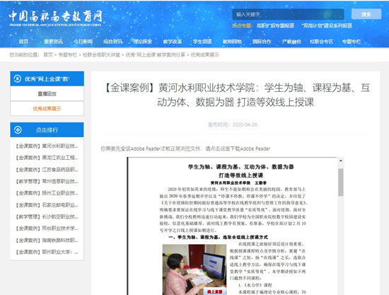 为深入贯彻落实国家“进一步做好在线教育教学”精神,保障在线教学质量,总结教师在线教学的优秀做法和教学成效,形成可复制可推广的典型经验和模式,全国高职高专校长联席会议组织开展了如何打造优秀“网上金课”在线分享活动。永利官网王勤香教授的《学生为轴、课程为基、互动为体、数据为器 打造等效线上授课》案例成功入选。