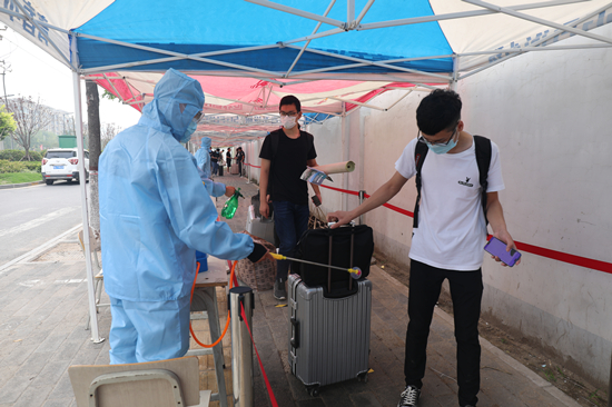 学生返校后,学校将继续做好学生返校后的各项工作,严格落实“日报告”“零报告”制度,严格实施每日晨、午检监测,密切关注生健康状况和位置信息的跟踪;积极做好学生考前动员与管理工作,开展返校学生心理辅导,安排集中复习教室,引导学生尽快适应校园生活;实行错时就餐制度,妥善安排学生分批就餐;加强对宿舍的管理,严格落实宿舍每日清洁,为学生身心健康保驾护航;组织开展爱心送考工作,引导学生安全有序进入考场,协调解决赴考途中遇到的问题。(摄影:党委宣传部 郝迪婧 袁洪博)