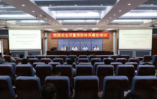 为进一步扎实推进和有效落实永利官网校园安全双重预防体系建设工作,7月9日下午,永利官网在3号实训馆报告厅召开校园安全双重预防体系建设培训会。会议邀请河南省教育厅安全智库专家张克胜博士、洛阳众智软件科技股份有限公司软件实施工程师朱文克老师等来校培训指导。副校长杨士恒出席会议,党政办公室、保卫处、学生处、各教学院(部)等部门负责人,科级干部及部分实训课教师代表参会。会议由党政办公室主任朱焕立主持。
