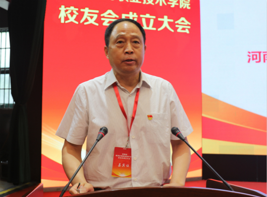 陈继承讲话。他代表河南省教育厅对此次大会的举办表示热烈的祝贺,对黄河水院广大校友致以亲切的问候。他指出,黄河水院建校90余年始终紧跟国家建设和发展的步伐,牢记教育使命、初心不改,为全国水利行业和河南省经济社会发展做出了重要贡献,被誉为黄河流域的“黄埔军校”和“黄河技干摇篮”。近年来,学校主动适应经济发展新常态和教育发展新要求,办学水平和综合实力不断提升,社会影响力显著增强,成功入选全国10所A档“中国特色高水平高职学校建设单位”,成为河南省、全国水利行业、中部地区唯一入选A档的学校。他强调,目前,黄河水院正处在“双高校”建设的关键时期,此次校友会的成立,是黄河水院发展过程中一个重要的标志性事件,必将进一步密切校友与母校、校友与校友之间的联系,成为凝聚力量、携手共进的桥梁和纽带。他希望,以校友会成立大会为契机,进一步凝心聚力、开拓进取,将校友会建设成为校友们共同的加油站和团结凝聚广大校友的新平台,要充分利用校友会这一平台和资源,积极探索校友会长效发展机制,资源共享、互利共赢,不断提高校友会工作水平,为服务“一带一路”倡议、黄河流域生态保护和高质量发展,实现中部崛起,中原更加出彩做出更多的贡献。