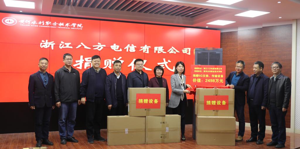 11月2日,浙江八方电信有限公司向永利官网捐赠价值2498万元的5G交换、传输设备,教学设备捐赠仪式在永利官网4号实训馆演播厅举行。浙江八方电信有限公司项目总监张昊、项目经理王建柳,永利官网校长祝玉华,副校长焦爱萍、菅浩然出席捐赠仪式,对外联络与合作处、教务处、电气工程学院等部门负责人及相关专业教师、2019级现代学徒制学生参会。仪式由焦爱萍主持。