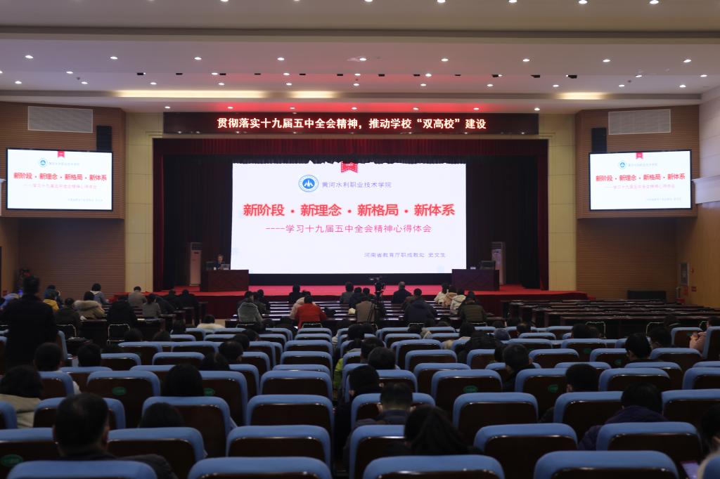 12月28日下午,河南省教育厅职业教育与成人教育处副处长史文生到永利官网宣讲十九届五中全会精神。报告会在大学生活动中心报告厅举行,全体科级以上干部聆听了报告,报告会由校党委书记周保平主持。