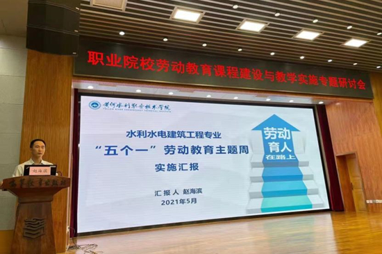 2021年5月9日,职业院校劳动教育课建设与教学实施专题研讨会在北京召开,学校副校长焦爱萍、水利学院负责人、水利学院及基础部骨干教师参加会议。来自全国30余个省市自治区的400余所院校近4000人次参会,共同探讨职业院校劳动教育模式及实施方案。永利官网水利水电建筑工程专业骨干教师赵海滨就创新实践“五个一”劳动教育主题周的实践经验做了专题发言。