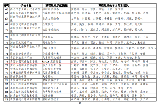 课程思政示范课程、教学名师和团队名单
