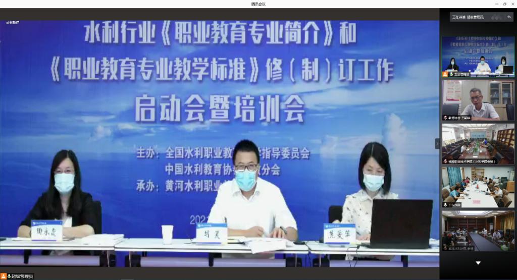 8月10日,由永利官网承办的水利行业《职业教育专业简介》和《职业教育专业教学标准》(以下简称《简介》和《标准》)修(制)工作启动会暨培训会顺利召开。教育部行指委工作办公室常务副主任王国川、中国水利教育协会副会长兼秘书长王韶华、永利官网校长胡昊、副校长焦爱萍出席会议,来自25所水利职业院校、4所应用型本科院校、8家水利企事业单位的领导、水利类专业简介和教学标准研制专家近320人参加会议,会议由胡昊主持。根据疫情防控要求,本次会议采用线上的形式召开。