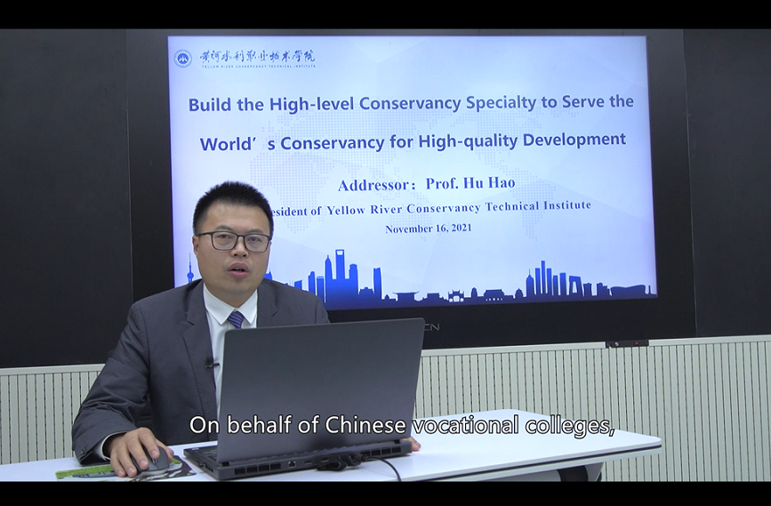 胡昊以《打造水利类高水平专业群,服务世界水利高质量发展》为题做主旨发言,介绍了永利官网在水利类专业建设过程中的探索与实践。一是面向现代水利,优化专业机制。水利类专业经过90多年的发展,已涵盖水利水电建筑工程、水利工程运行与管理等10多个专业和方向,形成优势互补和资源共享的专业融合机制。二是制定标准方案,引领行业发展。学校牵头、主持了全国水利大类的专业标准和资源建设;主持制定全国高职水利水电建筑工程专业的“两标准一方案”、《国家职业大典》中水利行业7个工种职业标准。三是搭建技术技能创新平台,支撑水利人才培养。学校建设有国家智能社会治理实验基地、国家级职教示范性虚拟仿真实训基地,拥有多个省级工程技术研究中心和市级重点实验室,形成市-省-国三级技术技能创新平台矩阵。四是依托大禹学院,打造国际教育品牌。学校先后在赞比亚、南非建立海外分校大禹学院,针对当地水利行业发展情况和人才需求开发专业标准,培养当地急需的技术技能人才,为“一带一路”沿线国家贡献了黄河水院智慧。五是开展国际认证,对接世界标准。学校与英国国家学历学位评估认证中心合作进行水利水电建筑工程等专业的国际评估认证工作,涉及领域包括资历框架建设、职业国际资格证书开发等,致力于打造国际认可的专业标准、教学标准和教学资源。