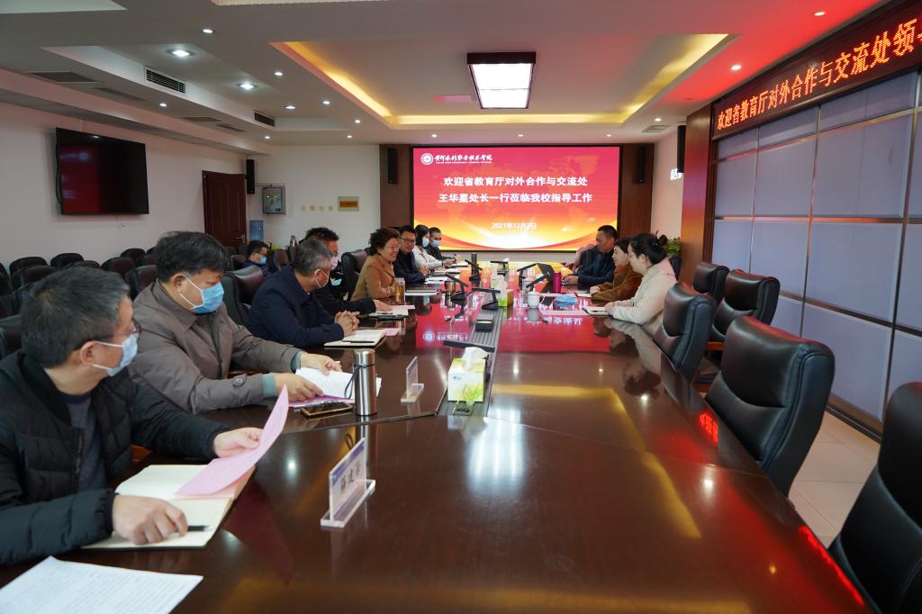 12月3日,河南省教育厅对外合作与交流处处长王华星、 郑州轻工业大学国际合作与交流处副处长马强和以及项目主管张笑一行3人莅临永利官网调研中外合作办学工作。校党委书记周保平,校长胡昊,党委副书记刘卫锋,副校长焦爱萍、刘玉宾,纪委书记朱焕立,教务处、对外联络与合作处、国际教育学院相关负责人参加调研汇报会。