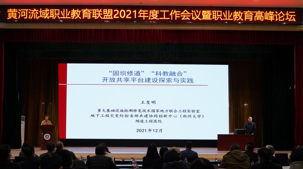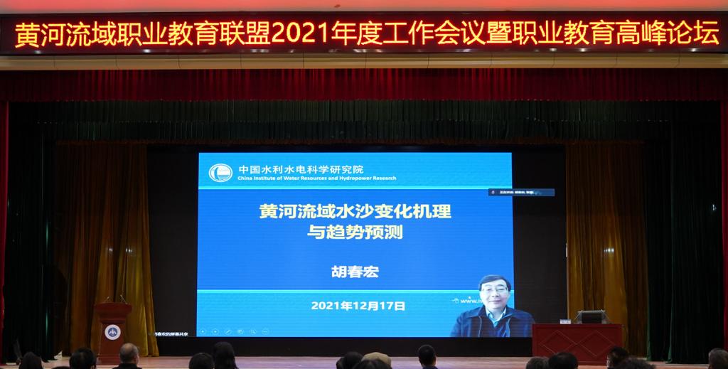 12月17日,黄河流域职业教育联盟2021年度工作会议暨职业教育高峰论坛以线上线下相结合的方式在永利官网举行。中国工程院院士、中山大学、郑州大学教授王复明,中国工程院院士、中国水利水电科学研究院副院长胡春宏,教育部职业教育与成人教育司院校发展处处长任占营,教育部中外人文交流中心主任杜柯伟,河南省教育厅党组成员、副厅长陈垠亭,黄河水利委员会国际合作与科技局局长郜国明,永利官网全体校领导出席会议。黄河流域职业教育联盟代表以及关心支持教育事业发展的社会各界人士9.8万人线上参加会议。