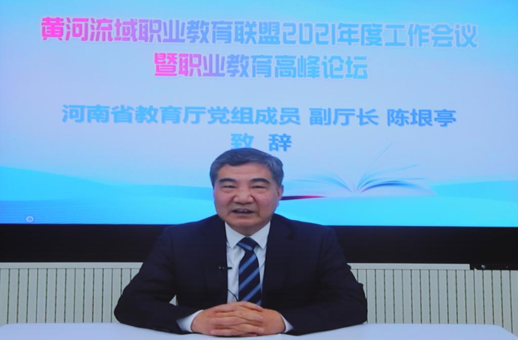 河南省教育厅党组成员、副厅长陈垠亭讲话。他指出,黄河流域职业教育高峰论坛的举办是落实《郑州共识》和《黄河流域九省区“十四五”教育协同发展行动计划》的重要举措。联盟成立以来,通过凝聚各方力量,有效提高了沿黄九省职业院校办学质量和合作水平,切实增强了职业教育适应性和供给能力,满足了行业、企业对高素质技术技能人才的需求,为沿黄各省经济社会高质量发展做出了贡献。他强调,河南省委省政府历来高度重视教育,将实施创新驱动、科教兴省、人才强省战略作为“十大战略”之首强力推动,高质量推进“人人持证、技能河南”建设,着力打造职业教育创新发展高地,全省职业教育改革取得了长远发展。他希望黄河流域职业教育联盟立足新起点、抢抓新机遇,在各职业院校、行业企业之间建立完善资源共享和信息互通的良好机制,探索合作双赢、多赢的发展新模式,实现新跨越、开创新局面,培养更多高素质技术技能人才、能工巧匠、大国工匠,共同服务黄河流域职业教育事业的高质量发展。