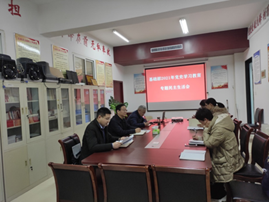 1月10日下午, 基础部领导班子在部门党员活动室召开了党史学习教育专题民主生活会,副校长刘守义到会指导,会议由直属支部书记吕振雷主持。