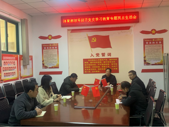 1月11日上午,体育部领导班子在体育部党员活动室召开党史学习教育专题民主生活会。副校长刘守义全程参会并做点评讲话。会议由体育部直属党支部书记、主任刘盎主持。