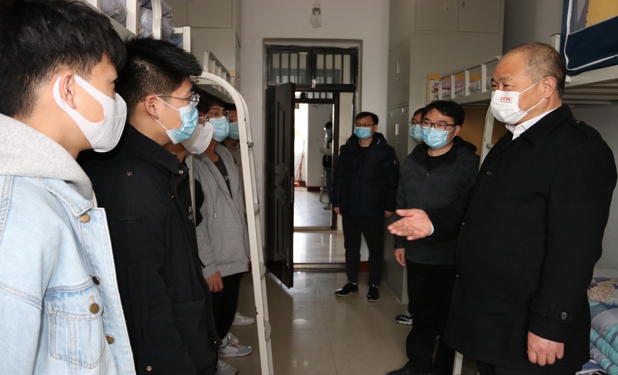 为进一步了解学生到校后的学习生活情况,3月4日上午,校党委副书记、工会主席杨士恒带领学生处、团委相关负责人及部分学院学生工作负责人深入学生宿舍,与学子们亲切交谈,了解学子们寒假在家的生活情况及其家乡的变化,询问学子们新学期的学习目标与计划以及生活学习中的想法与需求。当了解到学子们在学习、就业、技能提升等方面的目标和计划时,杨书记不住地点头表示肯定,对学子们昂扬的精神面貌表示赞赏。他嘱咐学子们,新的学期已经开启,要快速调整好生活节奏,学好专业知识,苦练专业技能,朝着自身的目标奋勇拼搏,将来毕业后,用自己的专业本领服务国家的各项建设,把个人的理想追求融入党和国家的事业之中,为党和国家多做贡献。他还叮嘱学子们,当前我国的疫情仍在持续反复,学校也是采取了严密的疫情防控措施,希望学子们严格遵守学校的封闭式管理规定,做好个人防护,不要麻痹大意,安心学习生活。杨士恒又查看了学生宿舍楼内的各项生活服务设施,并要求学生处关注学生们的需求,及时增添、更换、清洗相关服务设施,进一步提高服务质量,为学生打造温馨、舒适、整洁的宿舍生活环境。