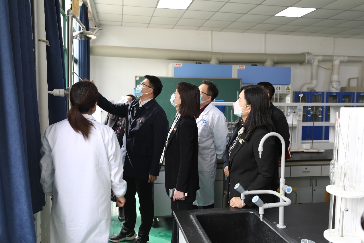 党委副书记、校长胡昊一行查看喷淋和洗眼器装置