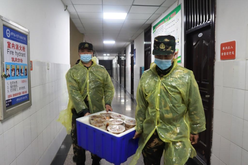 自3月24日以来,学工队伍承担了每日三餐6000余份点对点送餐的重任,为永利官网学生提供了集中有效的基础生活保障,彰显了学工队伍在疫情防控关键时刻的责任与担当。(供图:学生处)