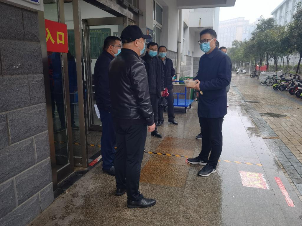 3月25日中午,校党委副书记、校长胡昊带领学生处、团委、保卫处、后勤管理服务中心、机械工程学院、旅游学院等单位负责人深入学生宿舍检查指导校内生活物资配送工作,并慰问一线学工人员和志愿者。