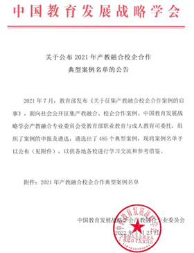 教育部2021年发布《关于征集产教融合校企合作案例的启事》,面向职业院校、行业企业、地方政府、科研机构等单位公开征集产教融合、校企合作典型案例,旨在通过对案例的梳理、提炼,推动职业学校深化产教融合、校企合作,促使相关工作逐步深入,形成经验、找出不足,破解产教融合校企合作中的难题,促进教育链、人才链与产业链、创新链有机衔接,进一步提高职业院校办学水平和人才培养质量。